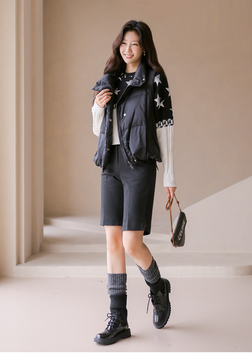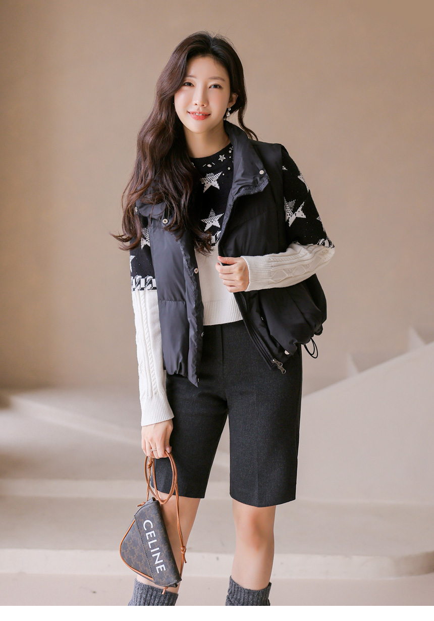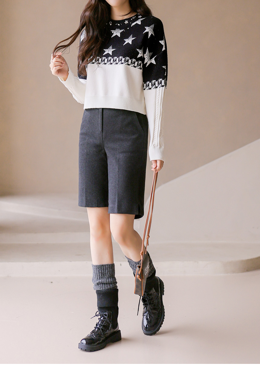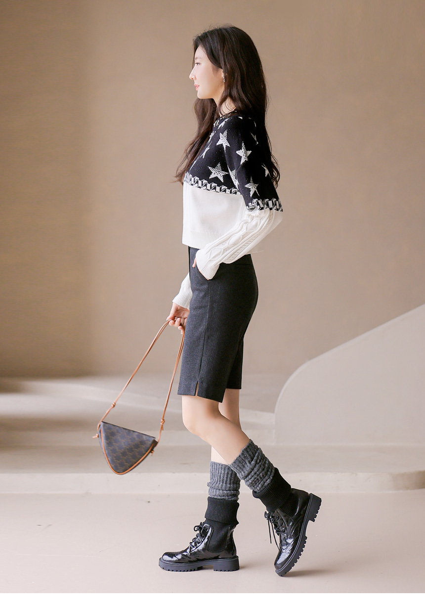 별 패턴 배색에 핫픽스와 스터드 장식으로 스타일리시한 포인트를 준 니트에요 :)