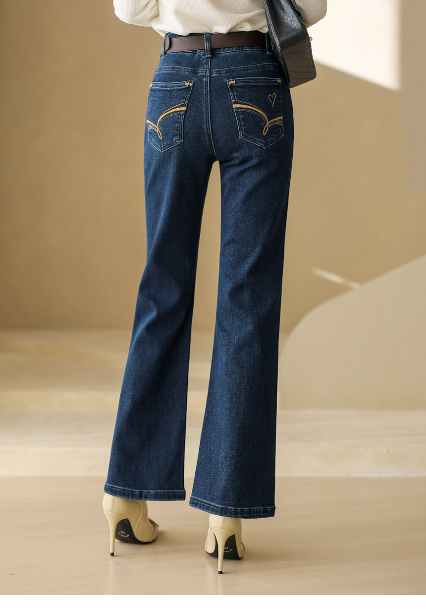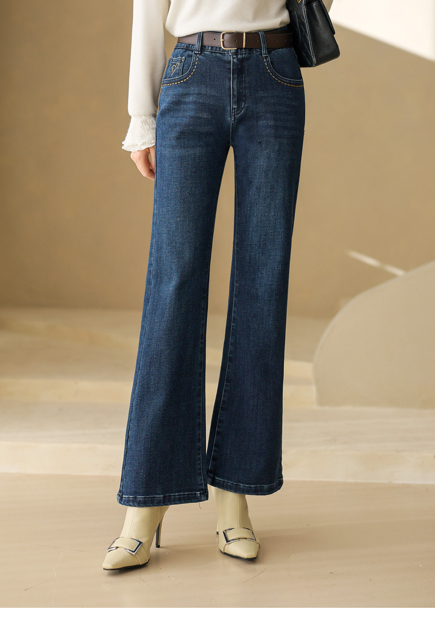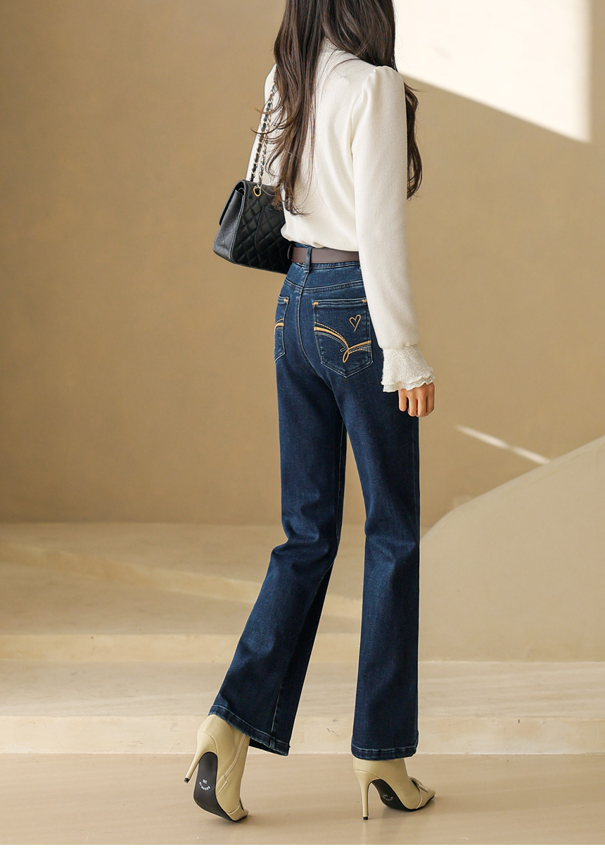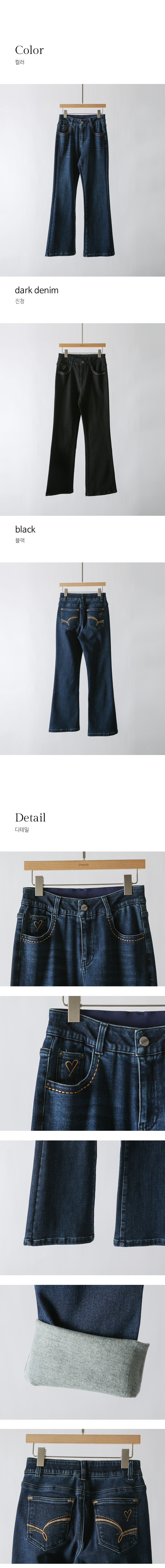 裏起毛ハート刺繍フレアデニムパンツ pt43909