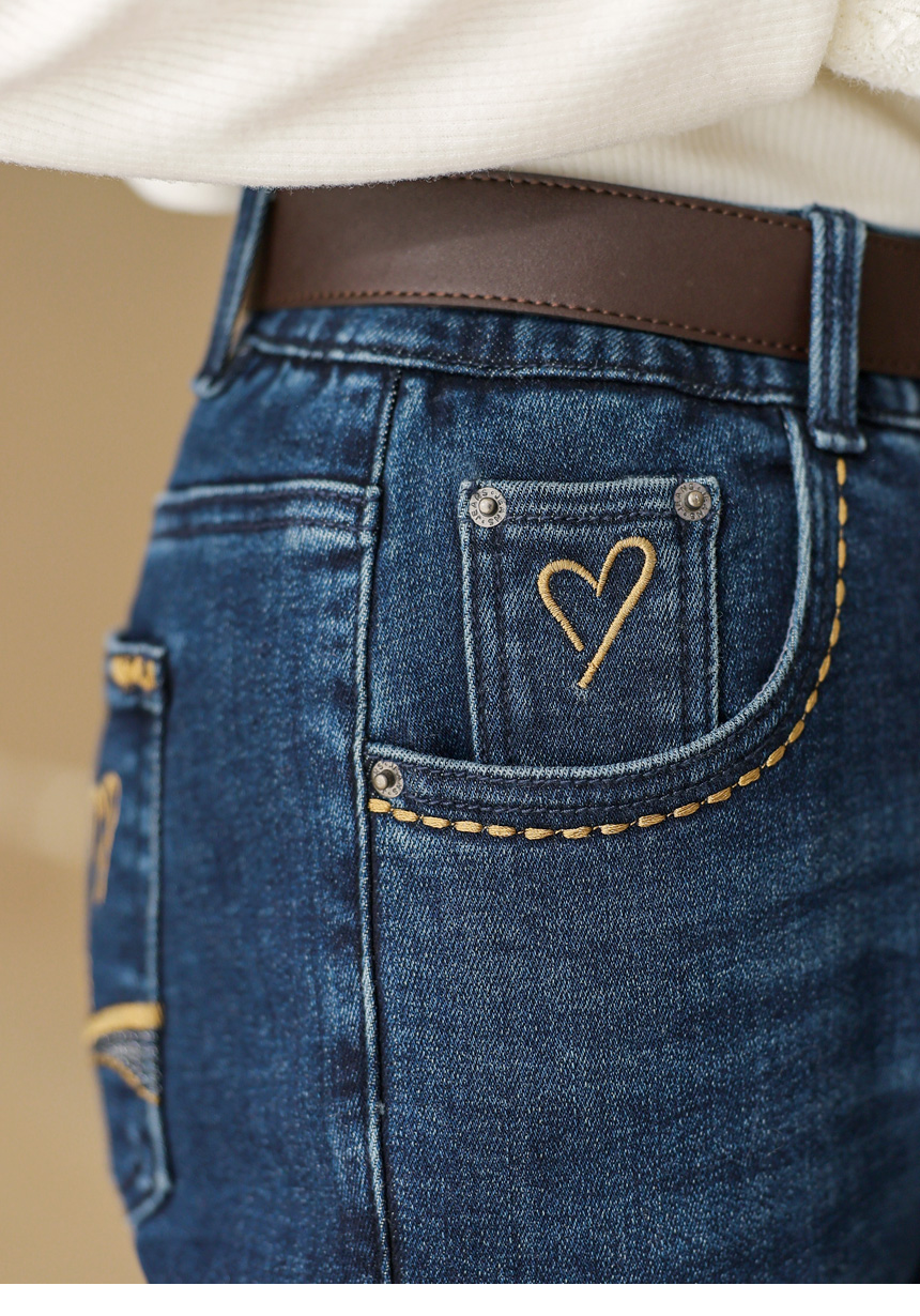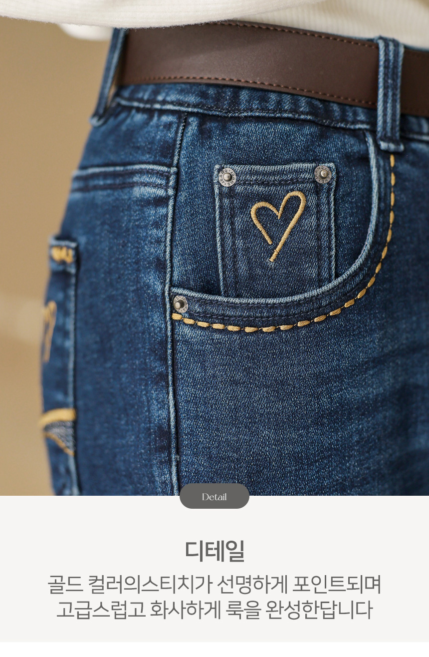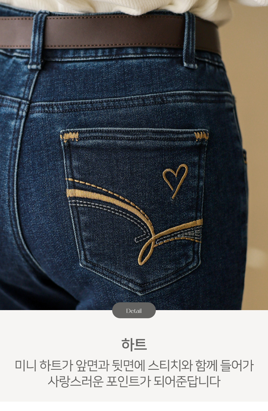 앞 포켓은 물론, 뒷 포켓에도 스티치와 하트모양 자수가 들어가있어