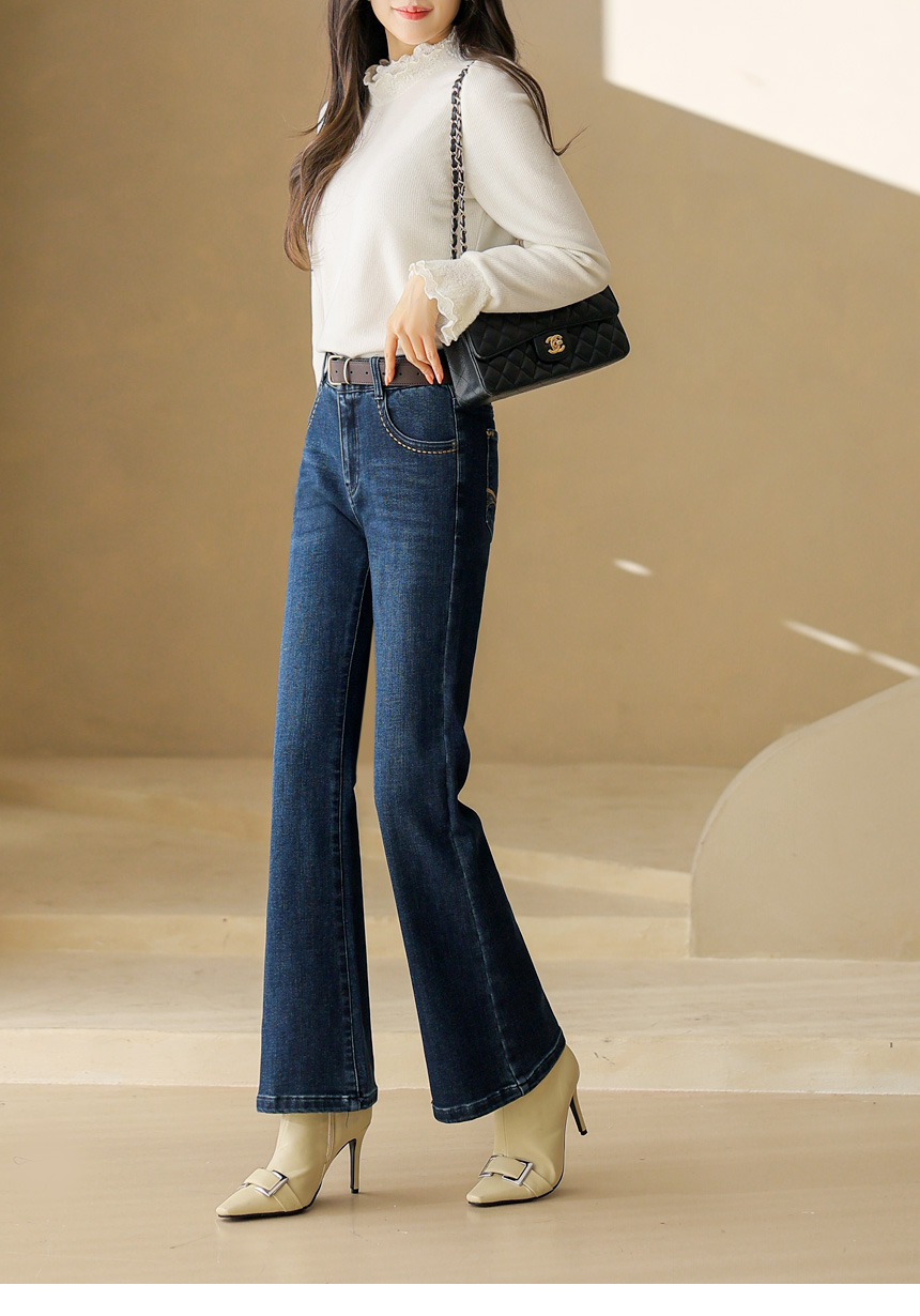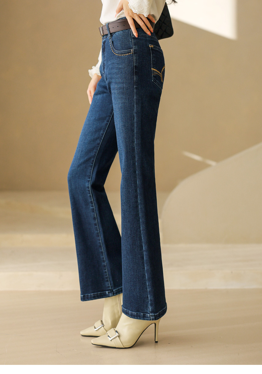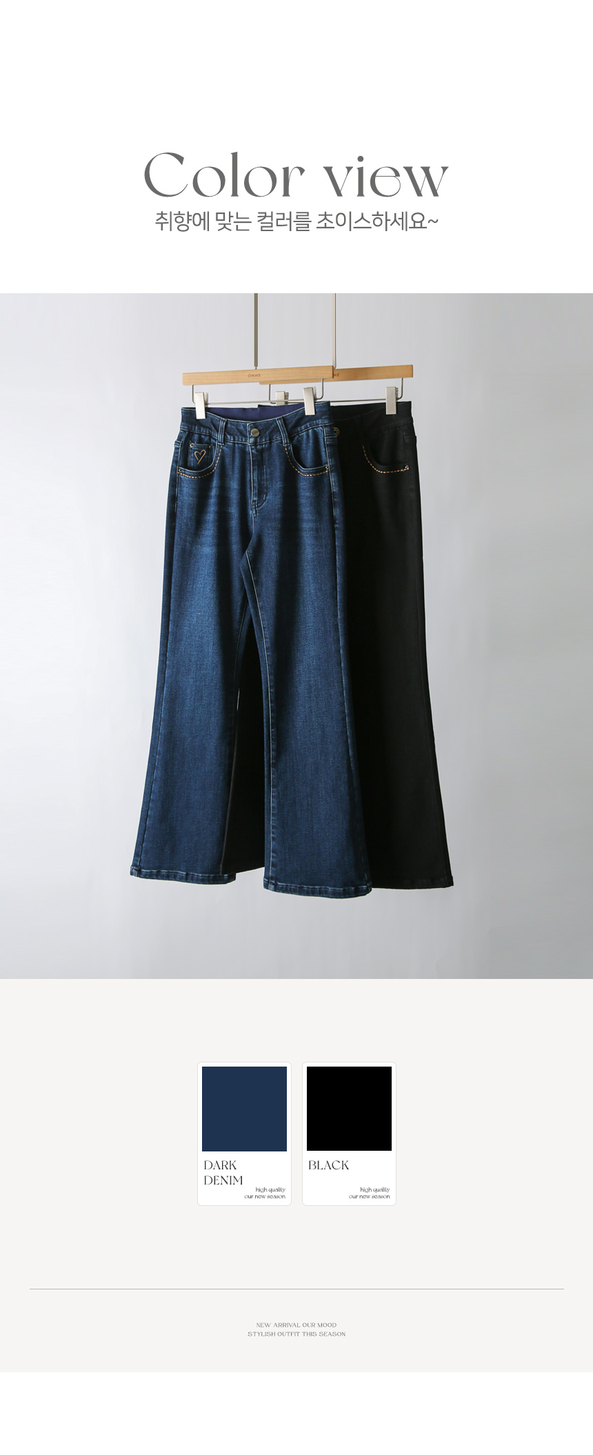 고급스럽고 세련된 무드를 선사하는 부츠컷 데님 팬츠에요