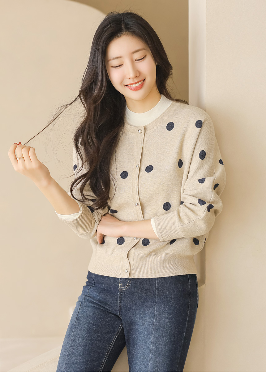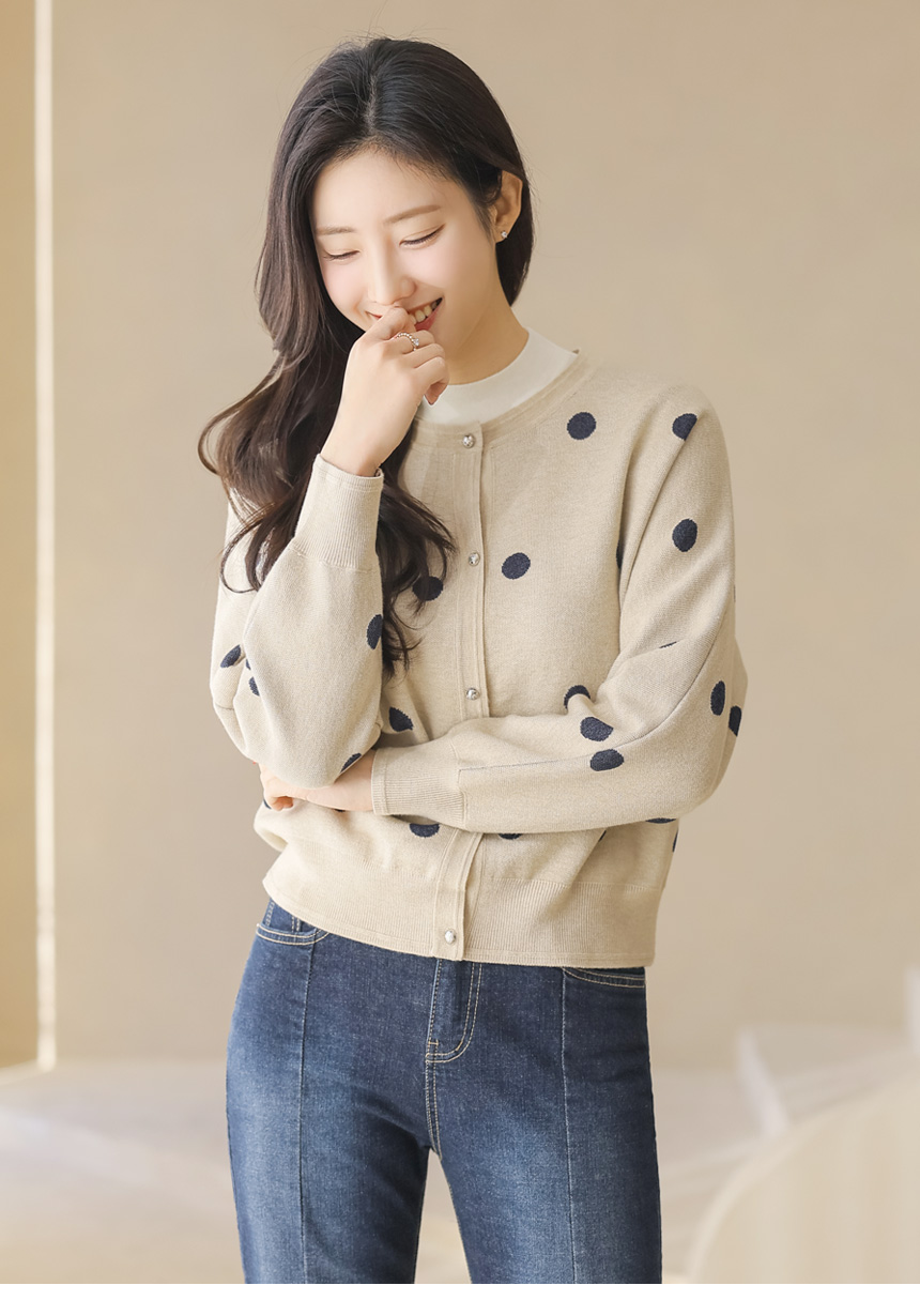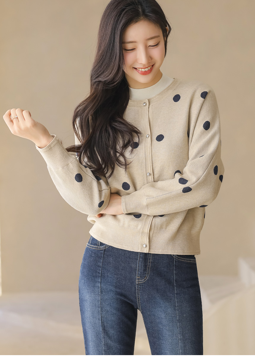 사랑스러우면서도 고급스러운 무드가 돋보이는 니트 가디건이에요 :)