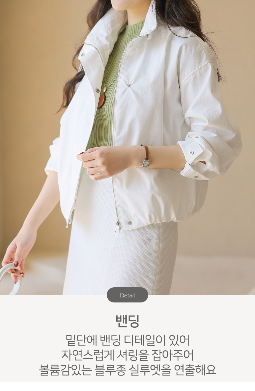 밑단에 더해진 밴딩 디테일은 자연스럽게 볼륨감 있는 실루엣을 연출해