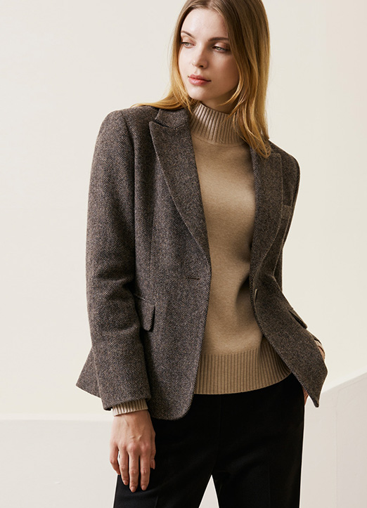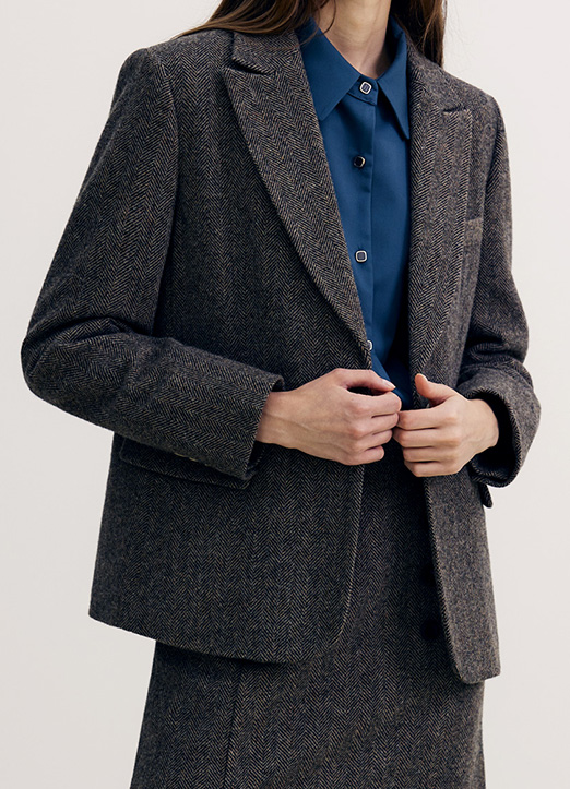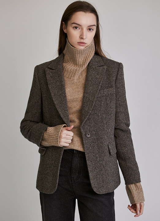 • [THE ONME] ウール ヘリンボーン シングル ジャケット jk19219