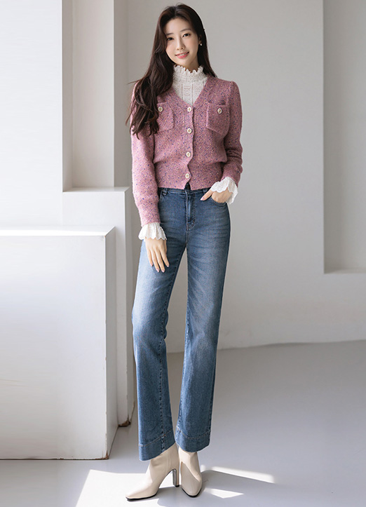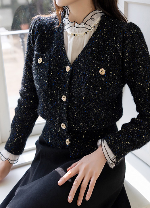 쥬얼리버튼과 펄 원사가 더해져 화사하게 밝혀주며