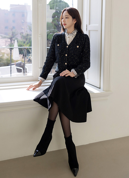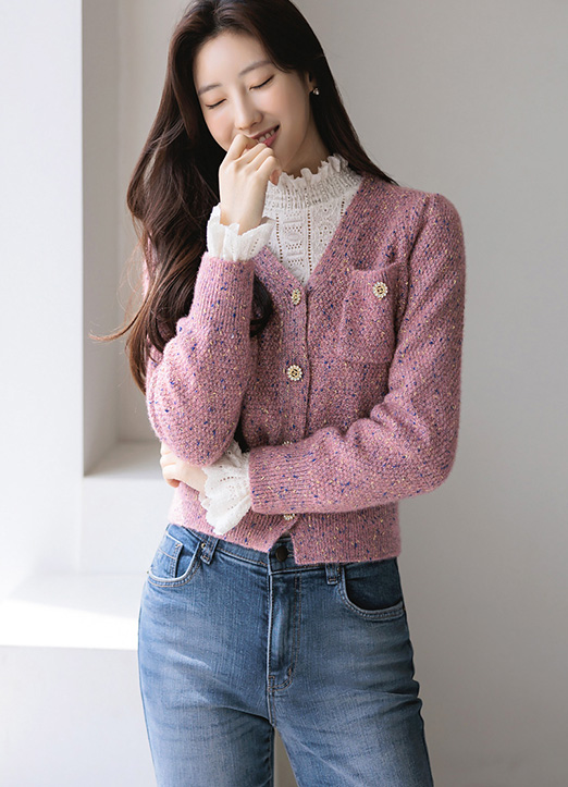 배색 실이 섞여있어 더욱 화려하게 연출해주는 가디건이에요 :)