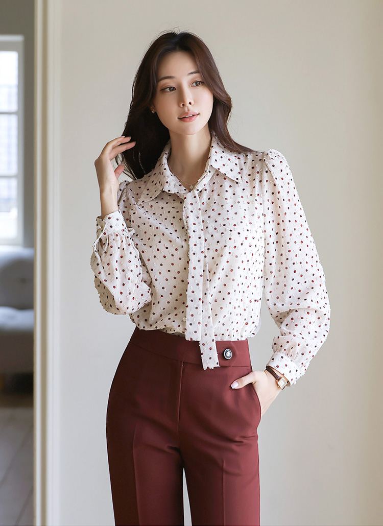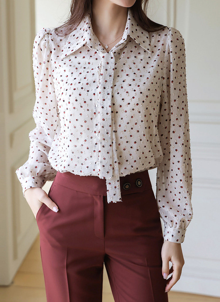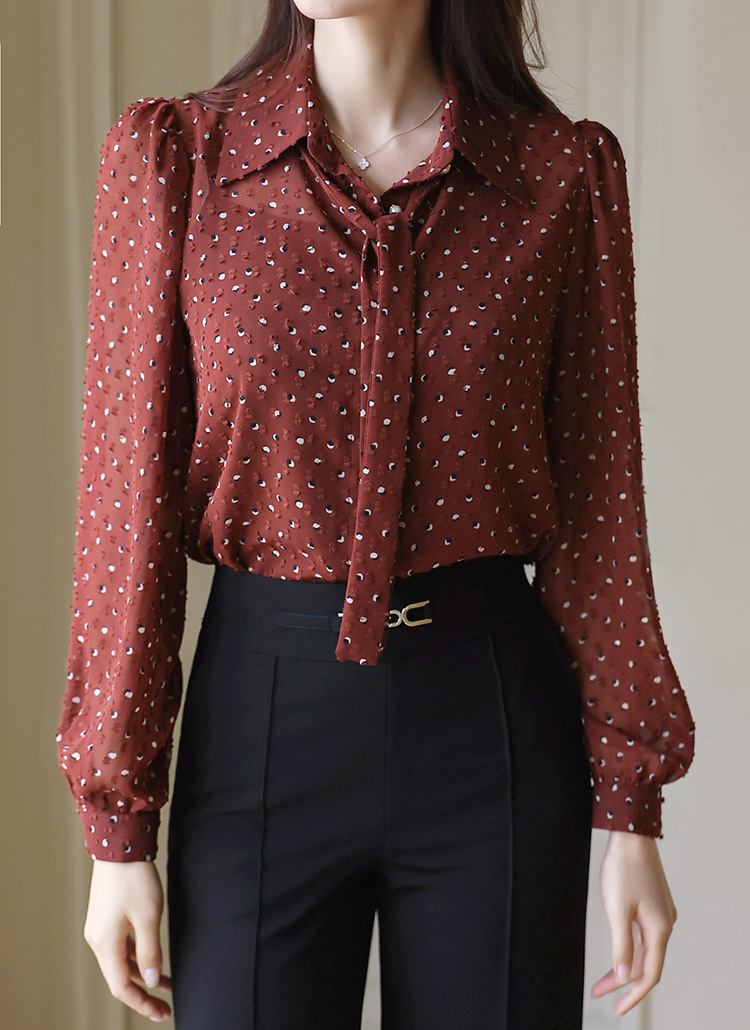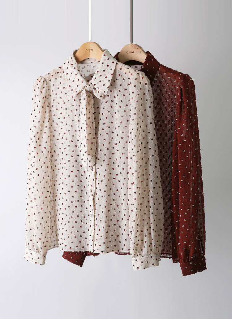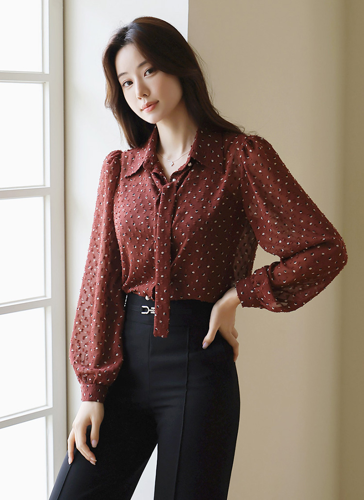 • [LouisAngel] 2WAYリボンタイ付きドットジャガードシフォンブラウス bl36027