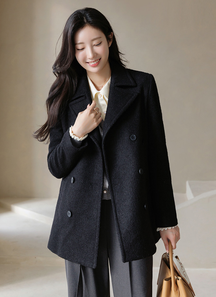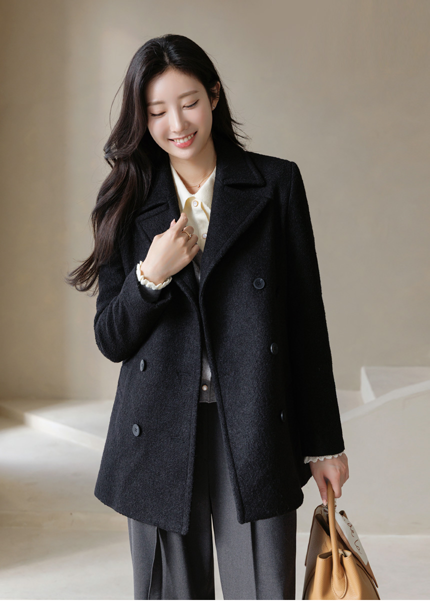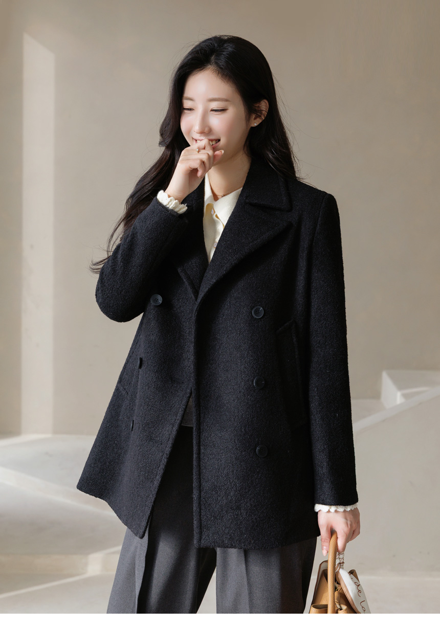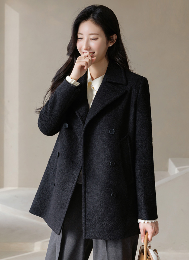 • 裏キルティングダブルボタン ブークレウールコート ct43623