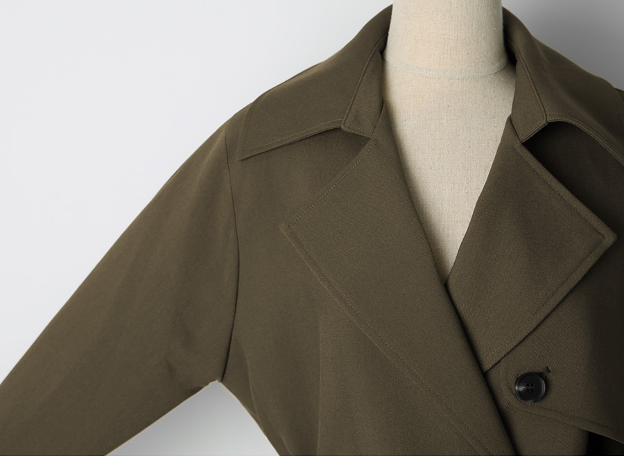 すっきりと洗練された印象でお召しいただける、ベーシックデザインのハーフトレンチコート。シンプルなデザイン、深みのある基本のカラーで揃えており、デイリーからオフィス、格式ばった席にまでいつでも万能に羽織っていただける優秀アイテム◎ロングトレンチコートと異なるカラーを選んだりして、コーディネートの幅を広げるのがおすすめ!一着あると長く重宝するマストハブアイテムです♬