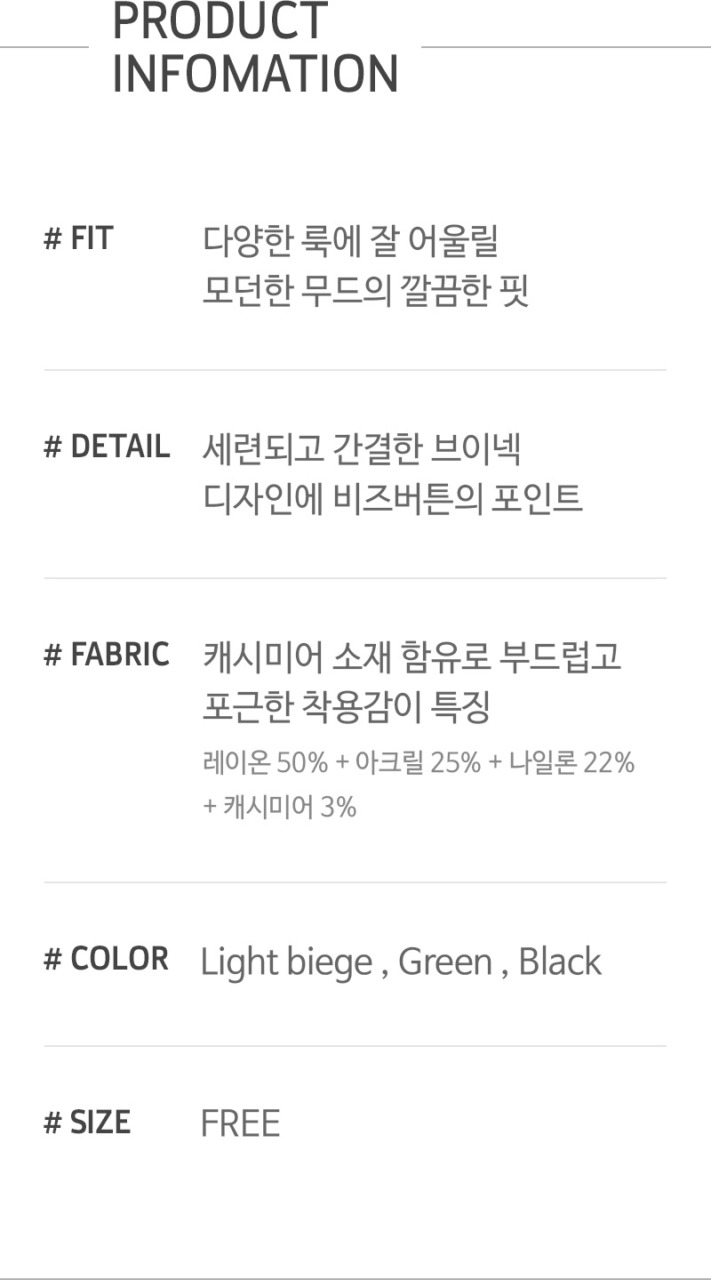 | カラー | : | 모델 착용컬러: グリーン |