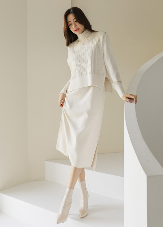 上品かつ洗練された雰囲気が溢れる、ニットベストがセットになったニットワンピース。それぞれでもセットでも活用度が満点のイチ推しのアイテムです♥