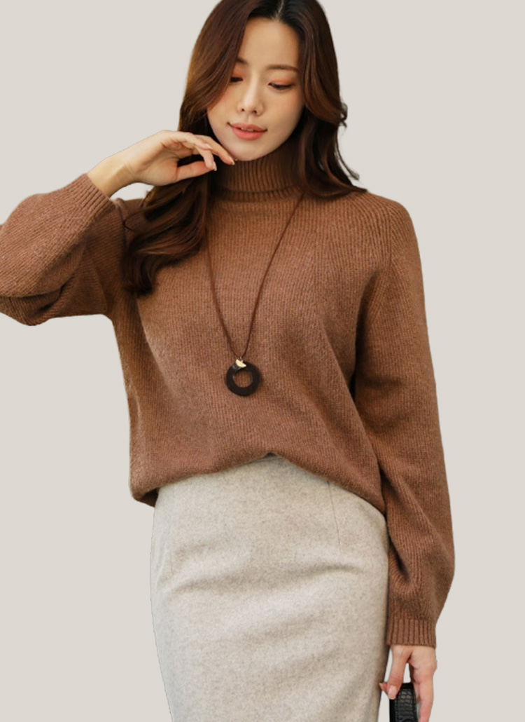터틀넥 디자인으로 넥 라인을 안정감있게