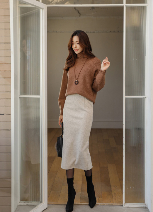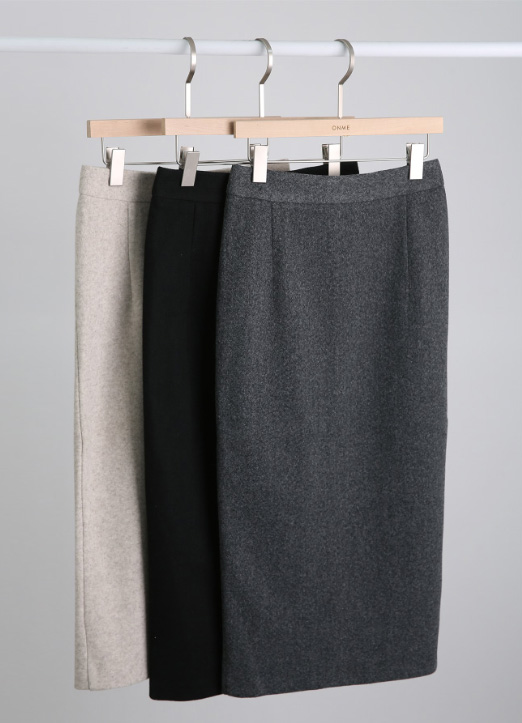 ウールライク起毛生地なので暖かいペンシルスカート。 スリムシルエットだけどバックスリット仕様、ストレッチ生地採用で動きやすいです◎