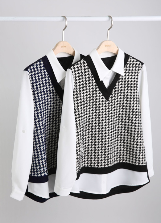[LouisAngel] シャツドッキングVネック千鳥格子配色ニットbl13126