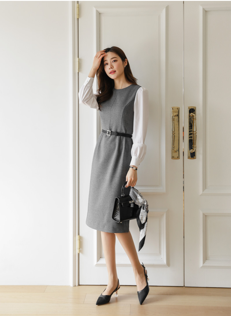 단아하고 세련된 쉐입의 H라인 원피스