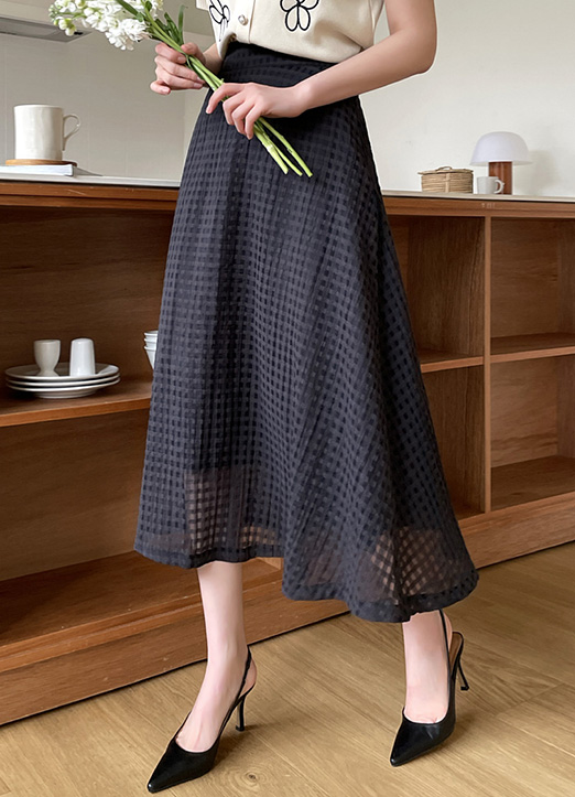 シースルーレイヤードチェックフレアスカート sk14346