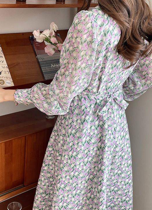 소매 부분은 같은 패턴의 쉬폰 소재를 매치해주어