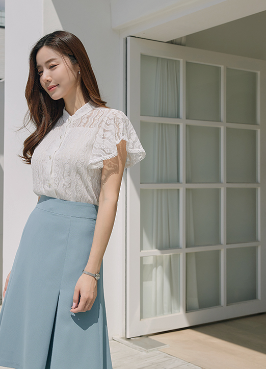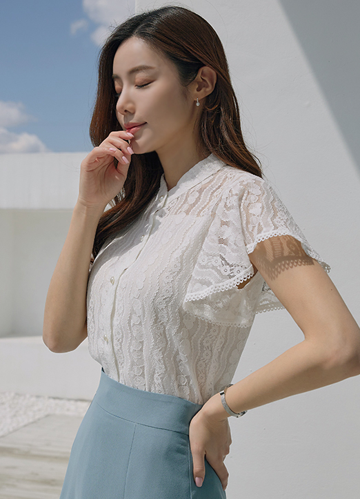 차이나 넥에 스판이 혼방된 레이스 원단으로 제작된