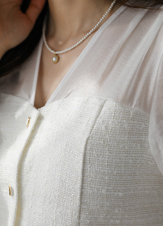 트위드와 쉬폰 전부 폴리 원사로 제작되어