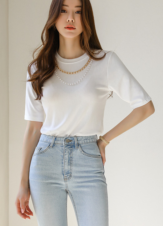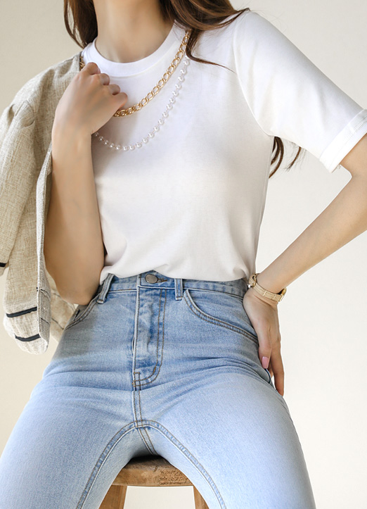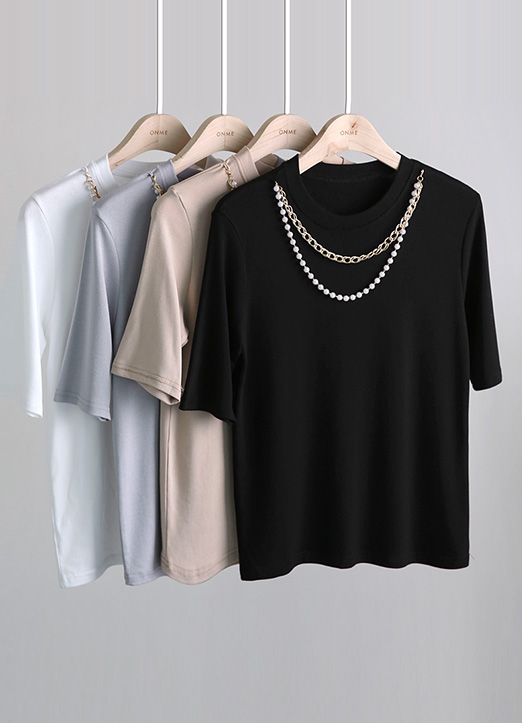 기본티에 네클리스로 멋을 낸듯한 디자인이라