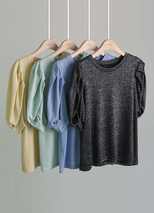 루이스엔젤 글리터 퍼프소매 티 블라우스♡