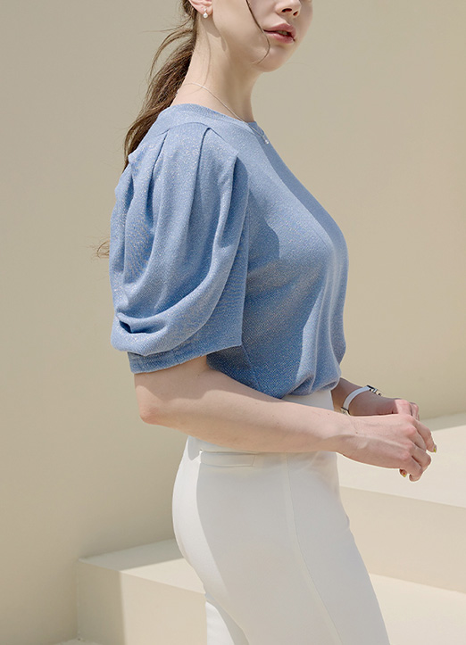 루이스엔젤 글리터 퍼프소매 티 블라우스♡