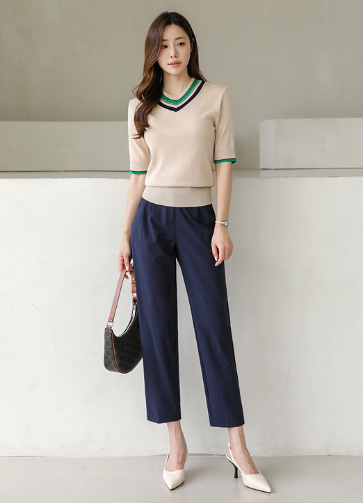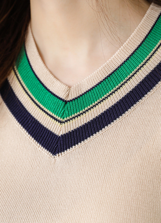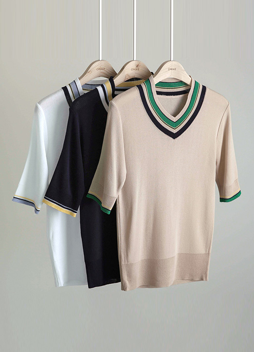 썸머 브이넥 컬러 배색 니트티