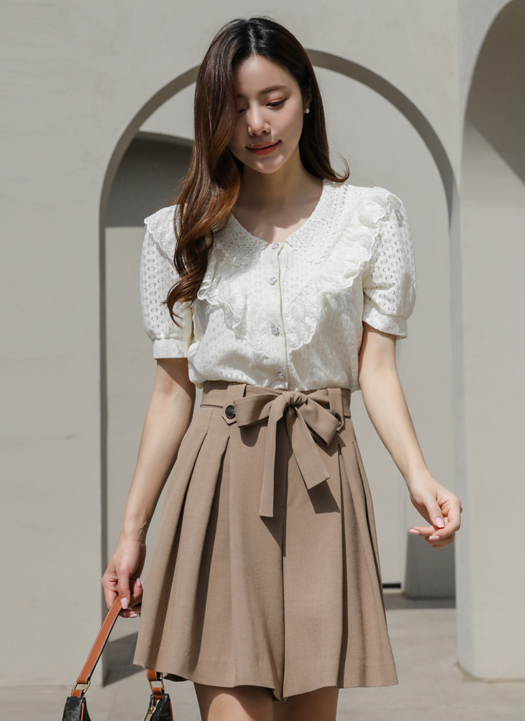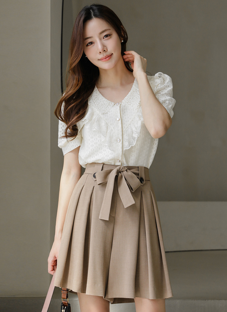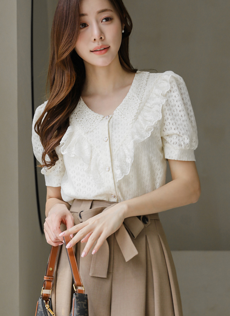 브이넥 프릴 비즈버튼 블라우스를 소개해요:)