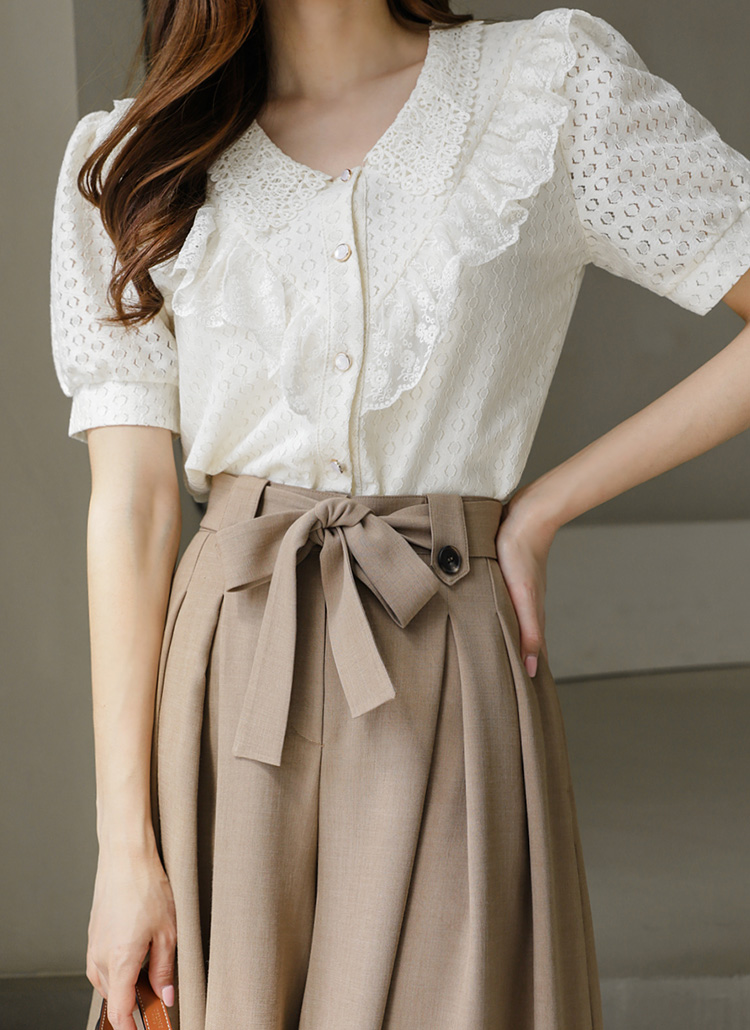 플라워 레이스카라와 바스트라인의 레이스 프릴이