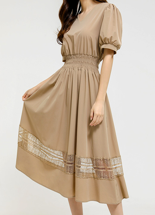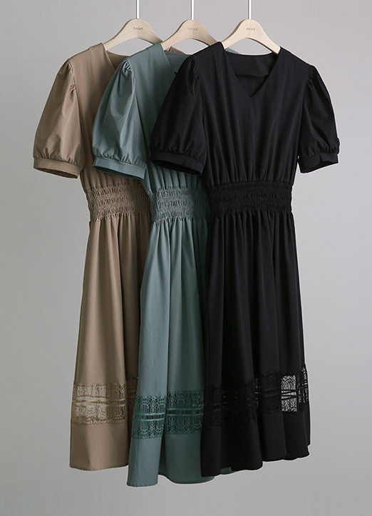 유연한 허리 스모킹 밴딩이 잘록한 허리라인을 연출해주면서