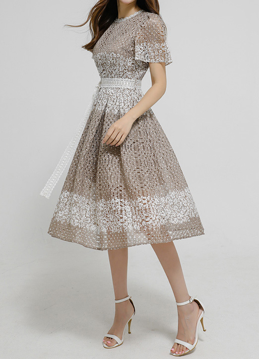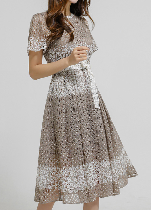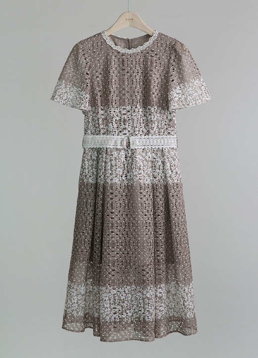 잘록하게 잡힌 허리라인에 자수레이스로 된 벨트가 SET로