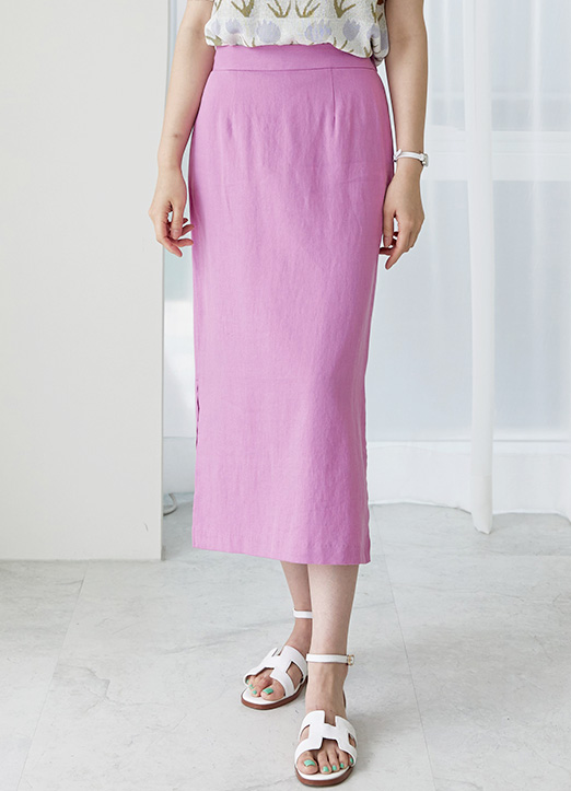 【6色展開】サイドスリット リネン Iラインスカート sk15874