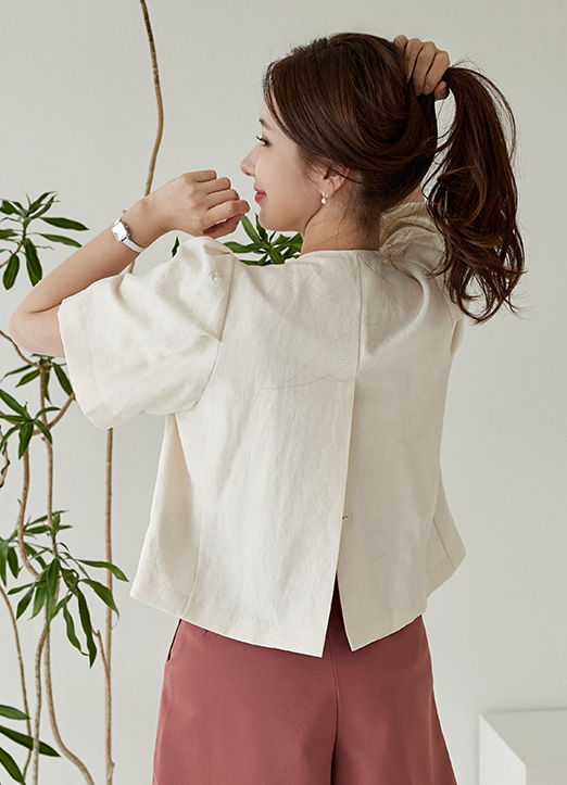 バックスリット リネン 半袖 クロップドジャケット jk16090