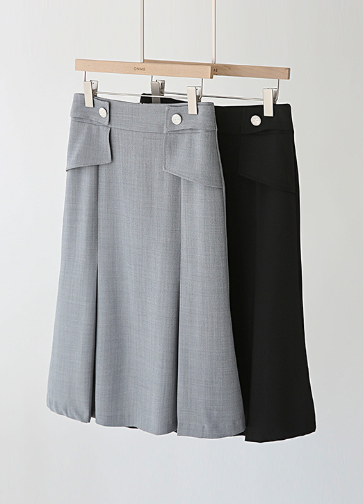 사이드 비조 핀턱 미디 머메이드 스커트~!