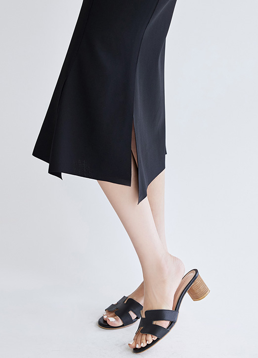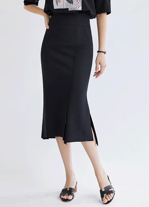 머메이드 실루엣이 여성스러운 느낌을 선사하는 슬릿 롱 스커트입니다