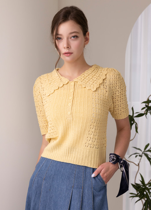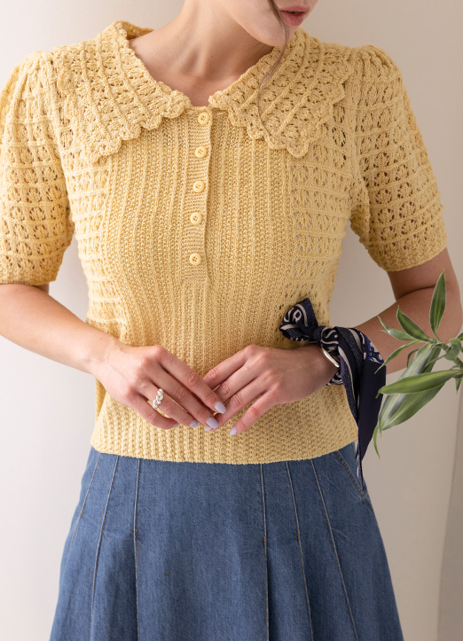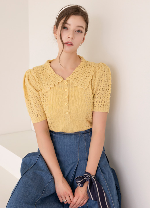 クロシェ編みカラーニットポロシャツ nt16870