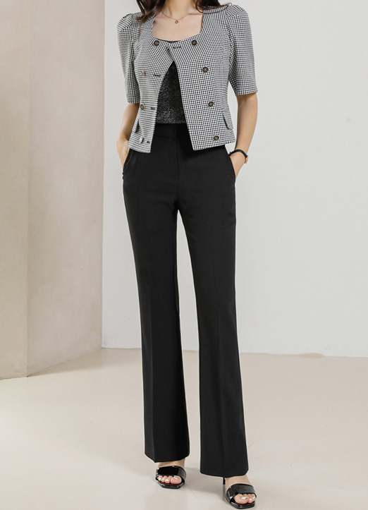 부담이 덜한 세미 크롭에 허리선이 살짝 잡힌 슬림한 디자인으로