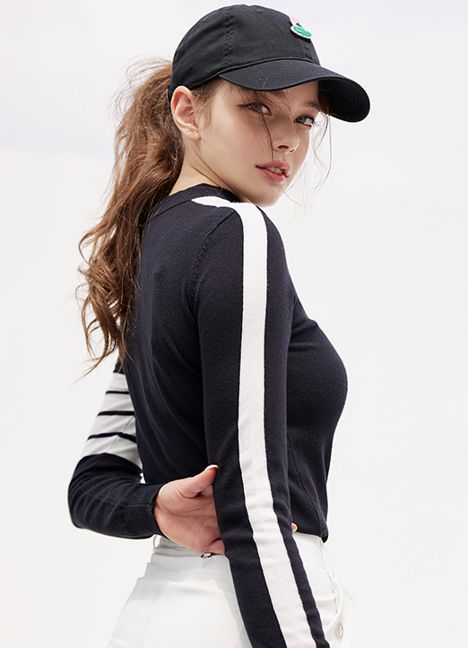 [QoG] バイカラーラインハイネックニットトップス nt17686