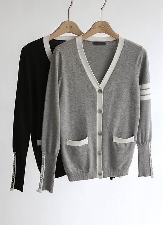배색라인이 포인트되는 가디건이에요:)