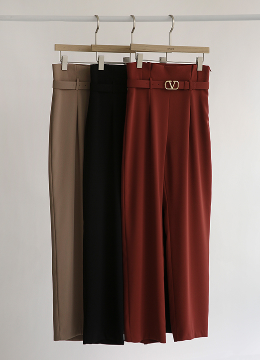 ベルトSET ハイウエスト タックスラックスパンツ pt17934