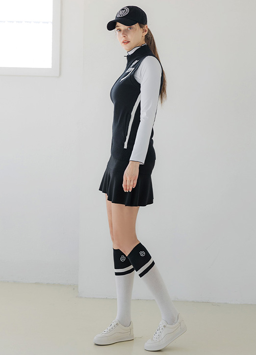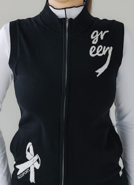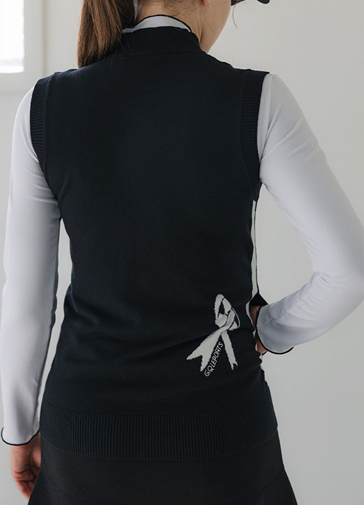 【QoG】[ゴルフウェア] リボンプリントハイネックニットベスト vt18330