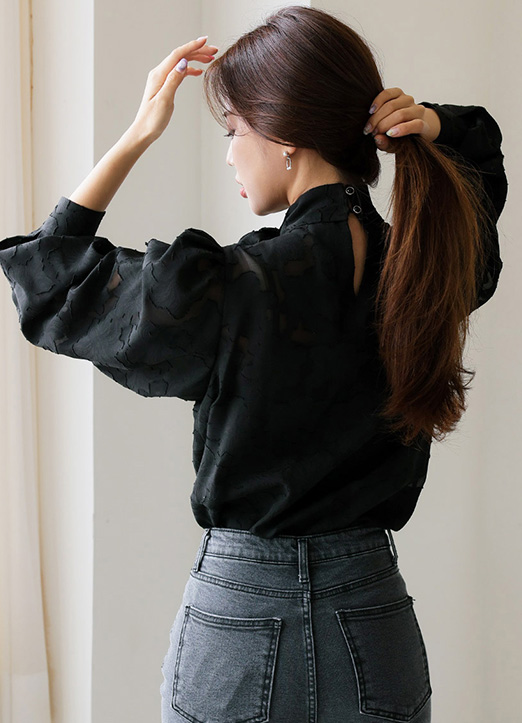 백뷰 넥 트임 및 소매 고급단추장식으로