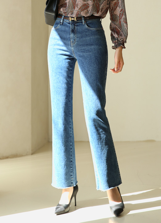 밑단이 컷팅되어있어 네추럴하게 연출되며