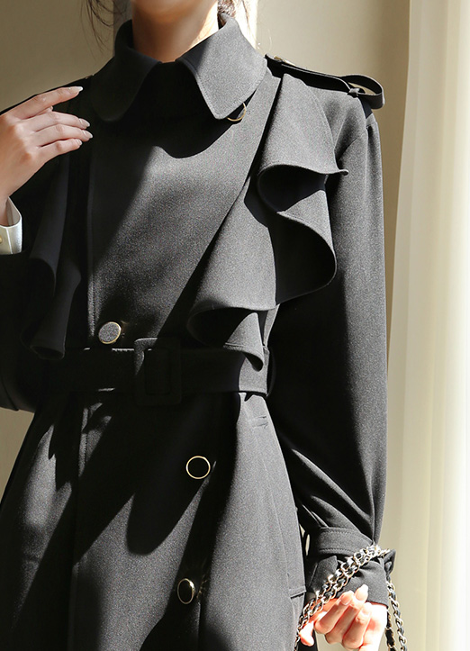 어깨에 견장 디테일이 들어가 라인을 멋스럽게 살려주며 -