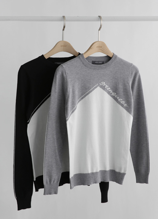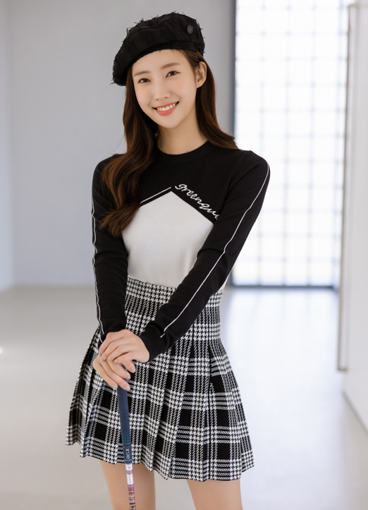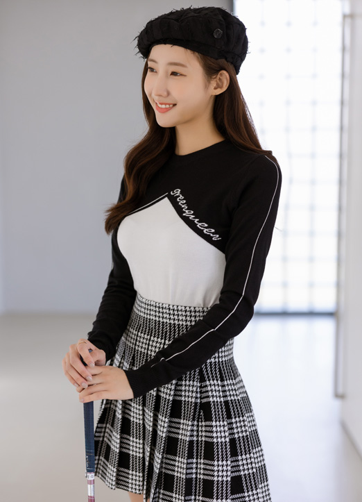 【QoG】[ゴルフウェア] ロゴプリントバイカラーニットトップス nt19034