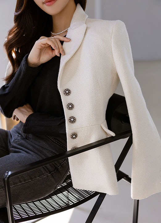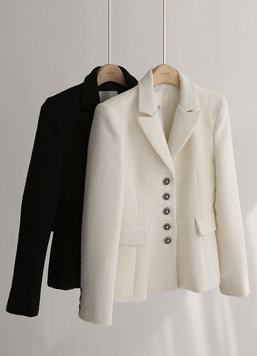 울 블랜드 소재로 제작된 트위드 자켓이에요