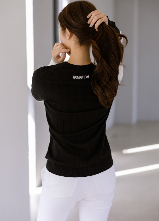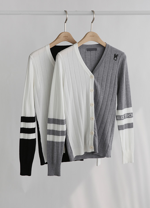 【QoG】[ゴルフウェア] バイカラーⅤネックニットカーディガン cd19131