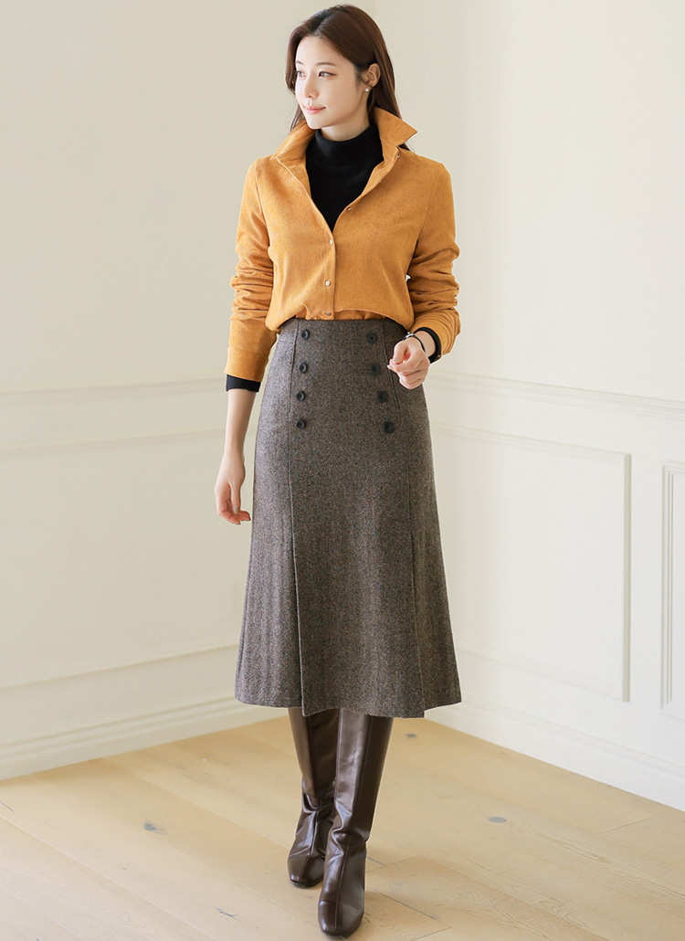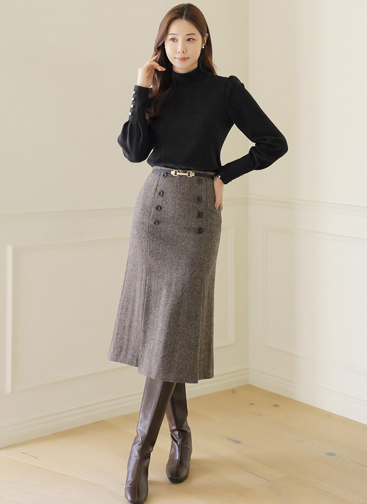 세련된 더블버튼 디테일이 돋보이는 스커트에요 :)