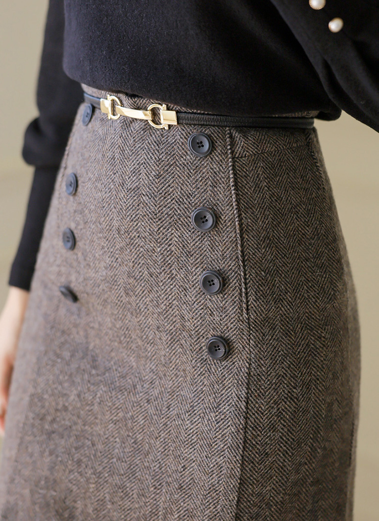 [THE ONME] ボタン付き ウール ヘリンボーン タックプリーツスカート sk19215