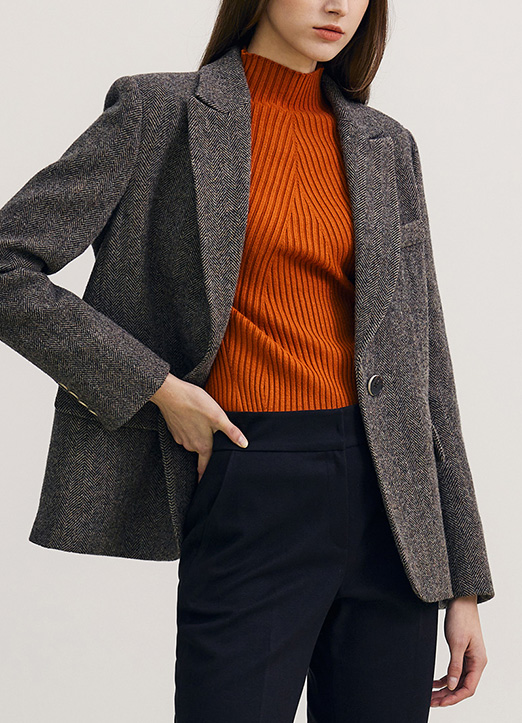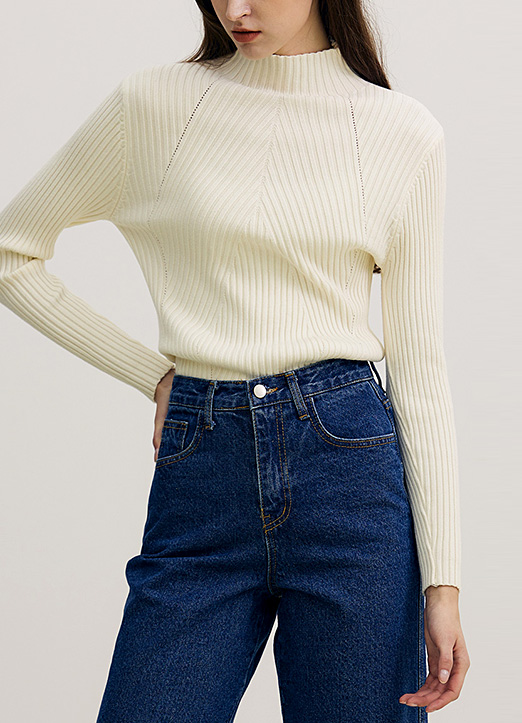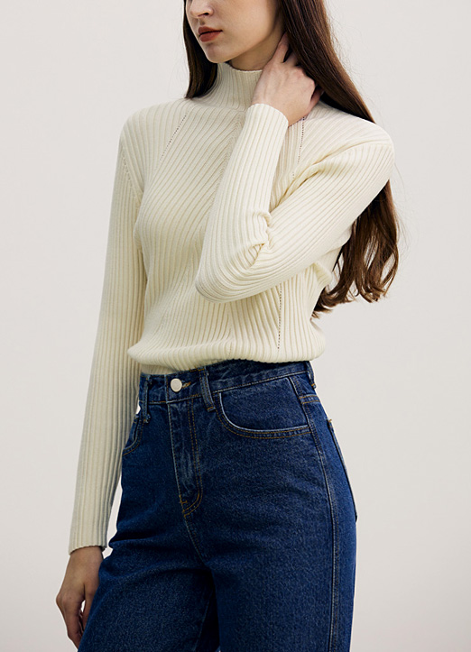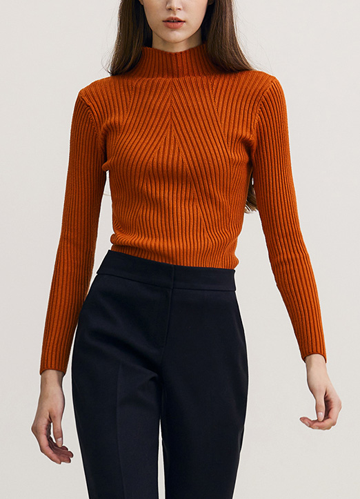 [THE ONME] ソフトタッチ ハイネックリブニットトップス nt19275