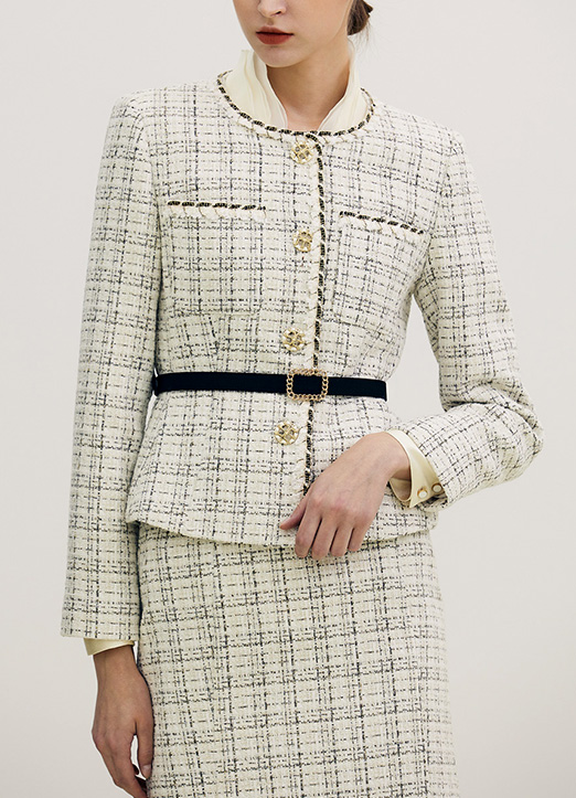 【セットアップ可能】[THE ONME] ウールブレンド ベルトSet チェックツイードジャケット jk19303